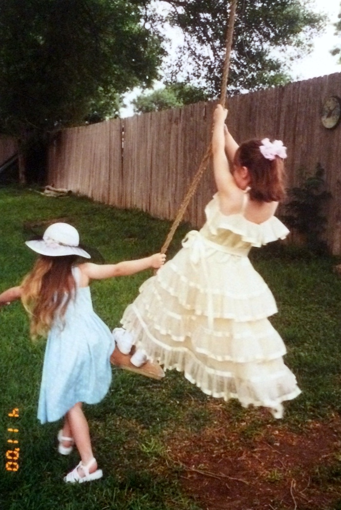 Used teen party dresses are easy to find at thrift stores and can be transformed into long elegant dresses for little girls with no more work than a couple of safety pins or a knot on each strap. Add fancy hats and you’re ready for a party.