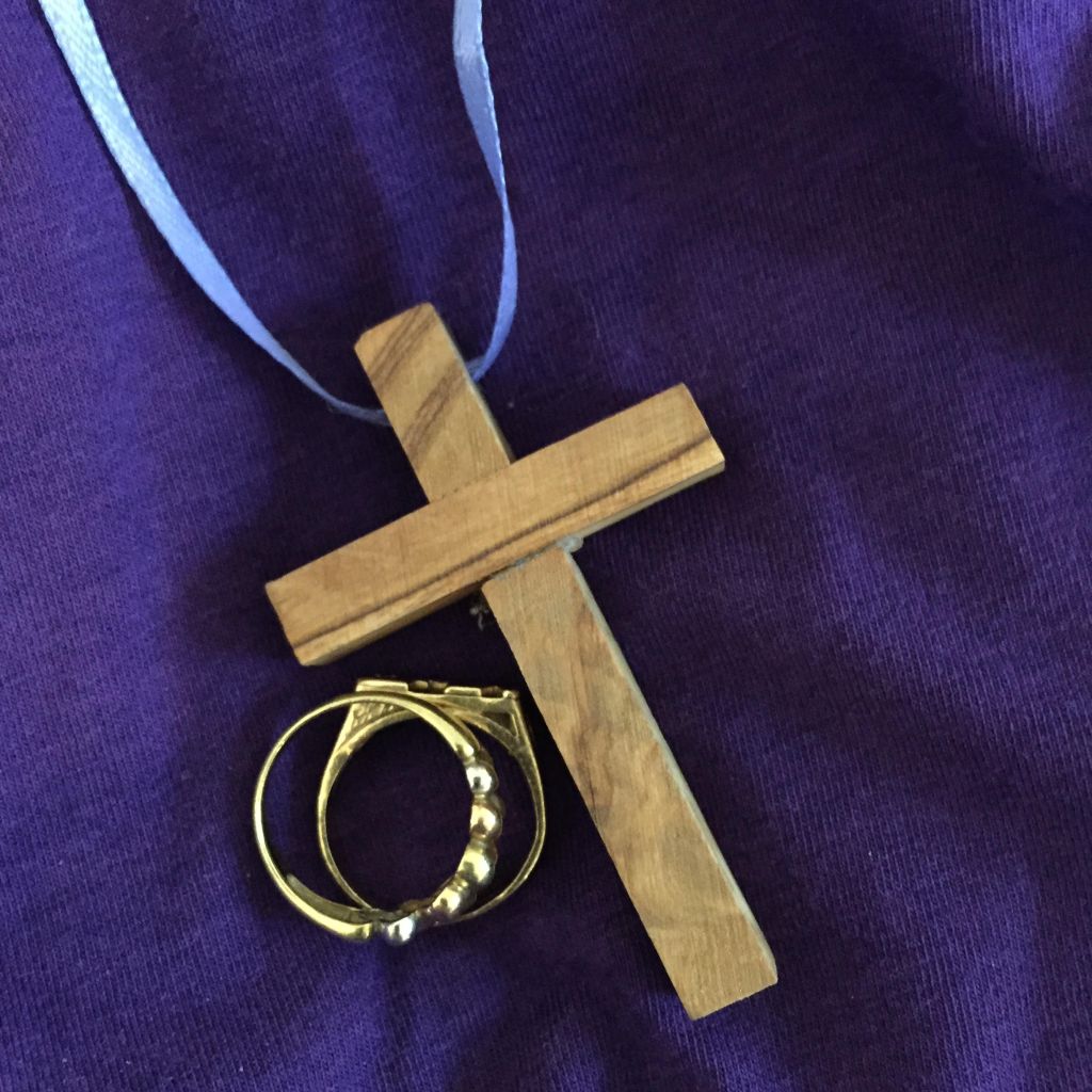 Then after careful thought, the king had an idea. He decided to ask the people of his kingdom to bring their jewelry of valuable gold, and then he would melt the bracelets and necklaces and rings and use the gold as money for their kingdom. But for every piece of jewelry the people brought, the king wanted to give a little cross made of wood as a symbol to show the people that he was thankful for their sacrifice. Each wooden cross would have a carving on the back that said, “I gave gold for wood.”