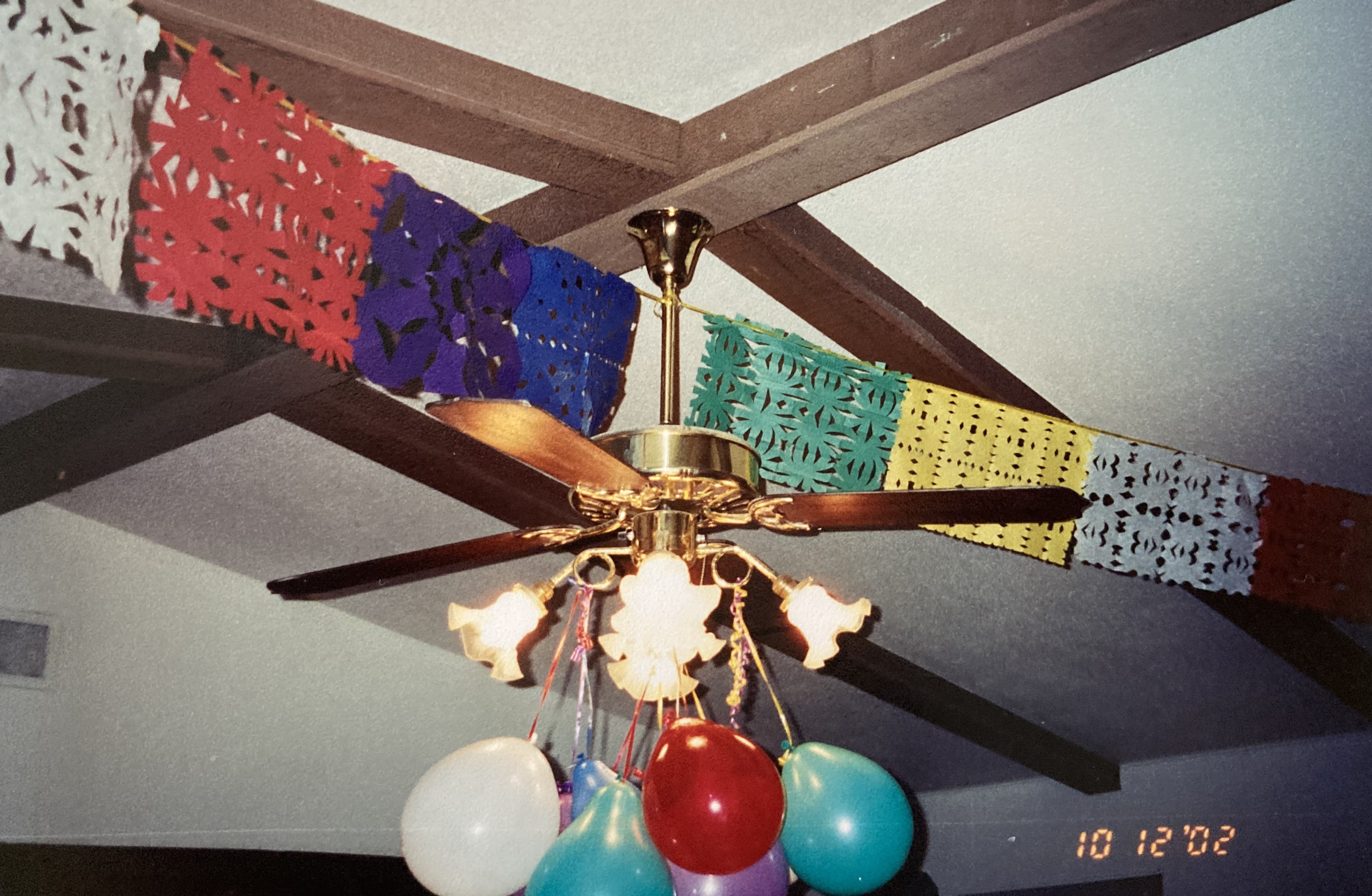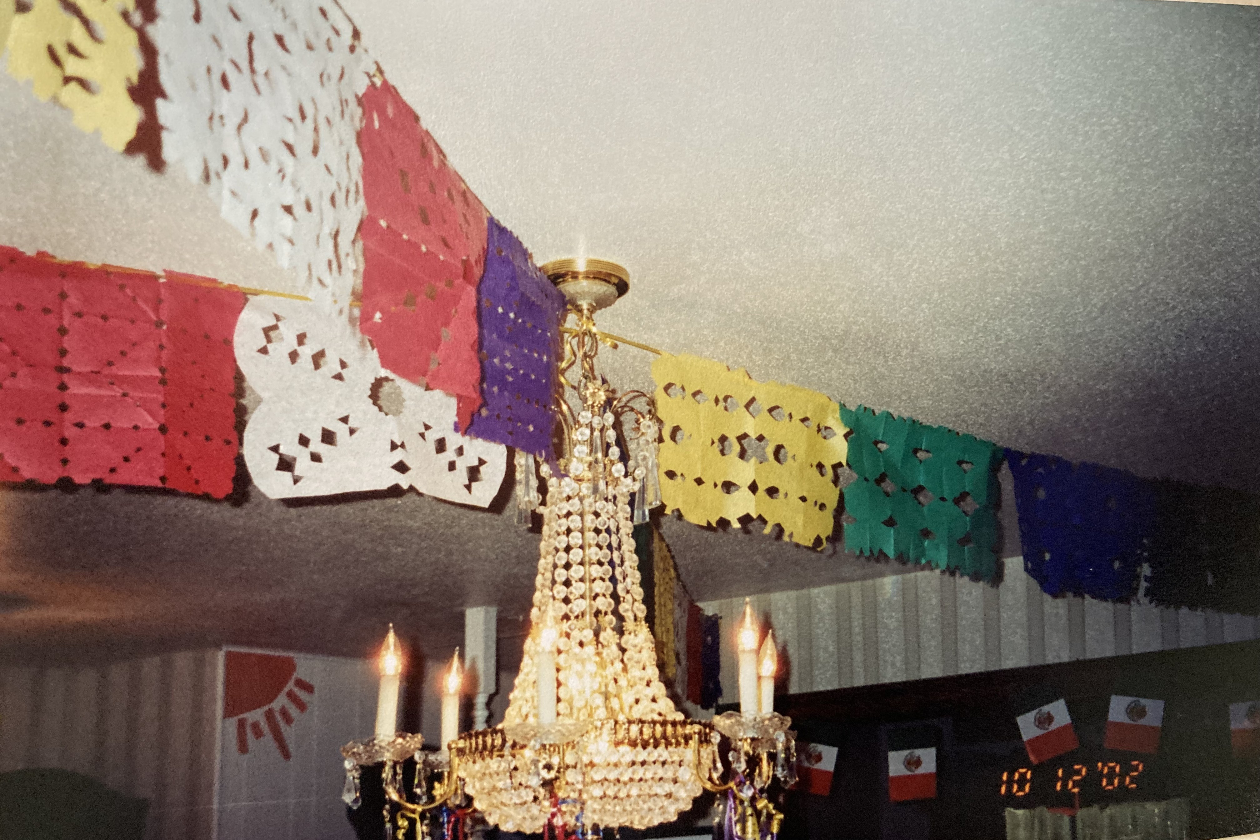 We wanted our house to look festive for the fiesta, so our daughters made papel picado banners for the ceilings of our dining room and living room. Papel picado means “perforated paper” in Spanish, and it is a traditional Mexican folk art.