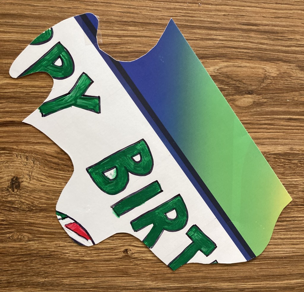 Before the party I had prepared a posterboard template for the puzzle with the outline of each piece. After the final clue, the kids worked together to assemble the sixteen-piece puzzle, taping the pieces to the template.